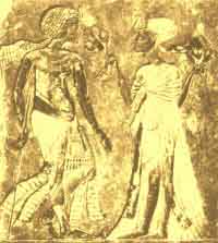 Pharaoh Mene-ptah was thoroughly alarmed, for the invaders penetrated as far as Heliopolis. But the god Ptah appeared to him in a dream and promised victory. Supported by his Shardana and Danauna mercenaries, who had no scruples about attacking their kinsmen, he routed the army of allies, slaying about 9000 men and taking as many prisoners.