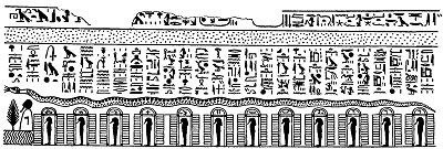 shoulders of eight gods, in mummied form, who are called "Bearers of the gods," at each end, immediately behind the bull's head, stands a bull, and at intervals seven gods, who are called "the