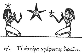 When they would symbolise the Mundane God, or fate, or the number 5, they depict a STAR. And they use it to denote God, because the providence of God maintains the order by which the motion of the stars and the whole universe is subjected to his government, for it appears to them that without a god nothing whatsoever could endure. And they symbolise by it fate, because even this is regulated by the dispositions