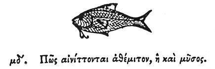 To denote a thing unlawful, or an abomination, they delineate a FISH, because the feeding upon fish is considered in the sacred rites as abominable, and a pollution: for every fish is an animal that is a desolator [laxative as food?], and a devourer of its own species.