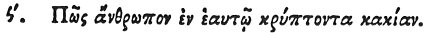 When they would denote a man who conceals his depravity within himself, and hides himself so as not to be known by his own friends and family, they depict a PANTHER; for it secretly pursues the beasts, not suffering its scent to escape, which is [a hindrance in the pursuit fl of other animals.