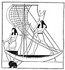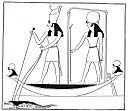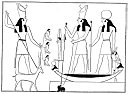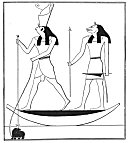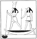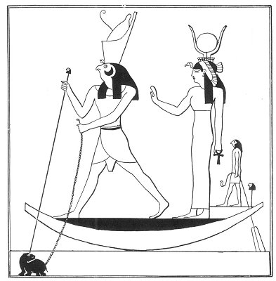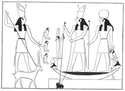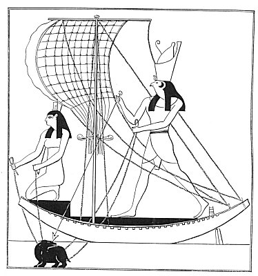 In gladness of heart Ra proposed a sail on the Nile, but as soon as his enemies heard that he was coming, they changed themselves into crocodiles and hippopotami,