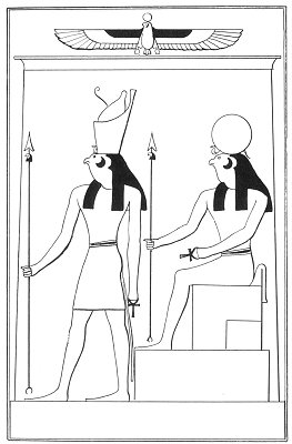 Horus of Behutet and Ra-Harmakhis in a shrine.