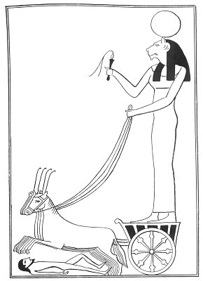 Ashthertet ('Ashtoreth') driving her chariot over the prostrate foe.