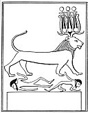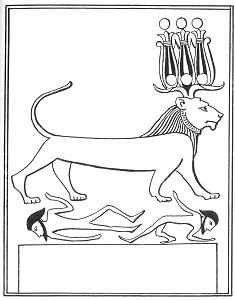 The last great fight in the North took place at Tanis, in the eastern part of the Delta. When the position of the enemy had been located, Horus took the form of a lion with the face of a man, and he put on his head the Triple Crown. His claws were like flints, and with