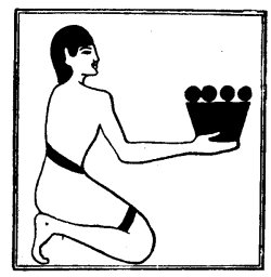 which has been translated both by "butter" and "cheese." The Vignette represents the SEM priest offering a vessel with four balls, or round cakes, of some substance in it,