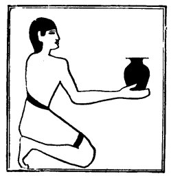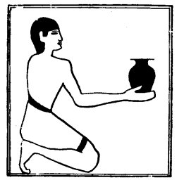 The Sem priest presenting a white vessel of wine.floweth(?) from thee." The words "Eye of Horus which hath been snatched from the hand of Set" refer to the belief that it was Set, the god of darkness, who swallowed the sun and moon during eclipses, and devoured the moon piecemeal after it was fourteen days old. The Eye of Horus was restored to him sometimes by Shu, who snatched it out of the hand of Set, 1 but more