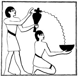 The Sem priest pouring water from a libation vase into a libation bowl held by a ministrant.