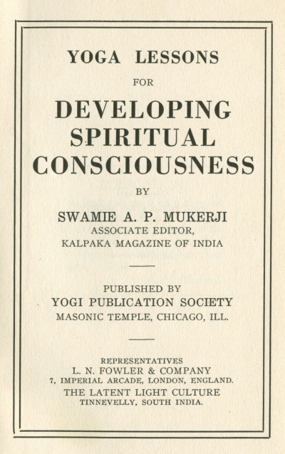 Yoga Lessons for Developing Spiritual Consciousness, by A.P. Mukerji, [1911], at sacred-texts.com