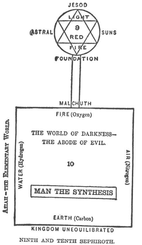 of Days mentioned in Daniel. It concerns us most to understand the Tree. The Chariot of Ezekiel, or Maasseh Mercabah, was a description of prefigurements concerning ceremonial and judicial law. The doctrine of Creation, in the book Levischith, was a dissertation upon physics. The Ancient of Days treated of God and the Messiah in a way so mystical that cabalists generally declined to ascribe any meaning at all to the direct sense of the words employed. Of these things we need say no more, but of the Cabalistical Tree it will be requisite to speak in more detail.
