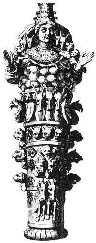 Crowned with a triple tower-like tiara and her form adorned with symbolic creatures representative of her spiritual powers, Diana stood for the source of that imperishable doctrine which, flowing from the bosom of the Great Multimammia, is the spiritual food of those aspiring men and women who have consecrated their lives to the contemplation of reality. As the physical body of man receives its nutriment from the Great Earth Mother, so the spiritual nature of man is fed from the never failing fountains of Truth pouring outward from the invisible worlds.