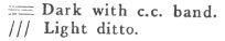 The c.c. band also presented some abnormalities. First of all the whole of the left side from the level of the clavicle downwards looked darker than on the right. This deepening of colour commenced in the middle of the spine at the back, and extended round to the front to about an inch to the left of the median line. As the girl stood facing, the right extension of the c.c. band was normal, while the left extension appeared darker, but it was difficult to obtain the true colour as the band was projected on to the aura itself on a plane in front of the trunk, and seemed to be mixed up with the granules. This was a unilateral instance of a phenomenon already mentioned. (Page 158). A dark spot was also discovered upon the nape of the neck.