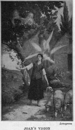 And so the thought came to be ever in her mind, "How I pity my country!" She brooded over the matter so much that by and by she began to have visions of angels and heard strange voices, which said to her, "Joan, you can deliver the land from the English. Go to the relief of King Charles."
