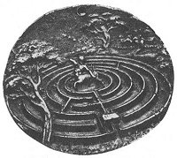 symbol of the perplexities and intricacies which beset the Christian's path. Others considered them to typify the entangling nature of sin or of any deviation from the rectilinear path of Christian duty. It has often been asserted, though on what evidence is not clear, that the larger examples were used for the performance of miniature pilgrimages in substitution for the long and tedious journeys formerly laid upon penitents. Some colour is lent to this supposition by the name "Chemin de Jérusalem." In the days of the first crusades it was a common practice for the confessor to send the peccant members of his flock either to fight against the infidel, or, after the victory of Geoffrey of Bouillon, to visit the Holy Sepulchre. As enthusiasm for the crusades declined, shorter pilgrimages were substituted, usually to the shrine of some saint, such as Our Lady of Loretto, or St. Thomas of Canterbury, and it is quite possible that, at a time when the soul had passed out of the crusades and the Church's authority was on the ebb, a journey on the knees around the labyrinth's sinuosities was prescribed as an alternative to these pilgrimages. Perhaps this type of penance was from the first imposed on those who, through weakness or any other reason, were unable to undertake long travels.