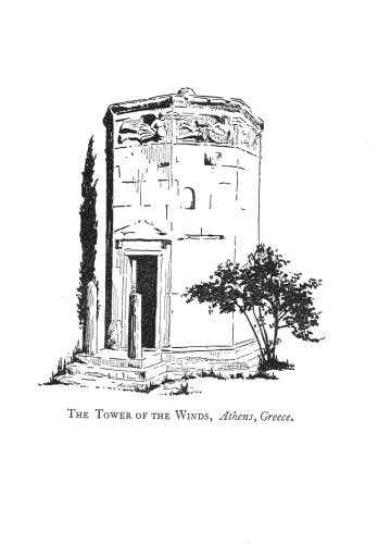 THE winds of Greece are blowing, today, in sunny Athens, around the Tower of the Winds on Aeolus Street. The tower stands in an enclosed, grassy space, with a few trees and scattered stones--as if left a little aside by the centuries. This tower had its origin in a daydream of Andronicus, lover of winds and stars; for, in spite of the belief of the early Greeks that all dreams live under the earth, Andronicus made his dream live actually on the earth, in plain sight of the Athenians. It was in the first part of the century before Christ that Andronicus was chosen by the people of Athens to plan a tower which should contain a water clock--this new tower to stand not far from the old market-place, on the low land lying north of the Acropolis. Now as Andronicus was something of an astronomer he decided to have sundials, also, on the water clock. So the tower was built, with a turret on the south side to contain the cistern which supplied the water for the water clock. The movement of water wheels caused the gradual rise of a small figure which pointed a rod to the hours on a dial. The Athenians were much pleased with their new water clock, or clepsydra. Greeks of earlier centuries had had to look to the stars for their time at night. "What star is passing?" they would ask. The clepsydra was evidently better than that method; in fact, it was the most important part of the tower! But, to Andronicus, it was of small significance compared with the thought of his beloved winds; for his cherished