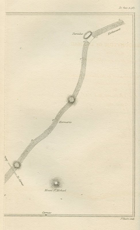 1. The dracontium of Carnac is one of the most interesting remains of the Celtic religion. It is situated half a mile from the village of that name, in the department of the Morbihan in Britany; nine miles from the beautifully situated town of Auray, and approaches to within a mile of the Bay of Quiberon.