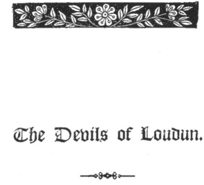 AT the beginning of the 17th century, the curate of Loudun was Urbain Grandier. To those talents which lead to success in this world, this man united a corruption of morals which dishonoured his character. His conduct had made him many enemies. These were not merely rivals, but husbands and fathers, some of high position, who were outraged at the dishonour he brought on their family. He was, nevertheless, a wonderfully proud man, and the bitterness of his tongue and the harshness with which he pursued his advantages only excited them the more. And these advantages were numerous, for he had a marvelous faculty for pettifogging. His iniquities had rendered him the scourge of the town, whose principal curate and greatest scandal he was at one and the