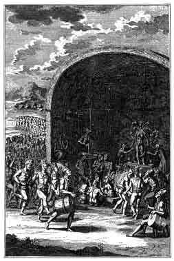DEMONOLATROUS CEREMONIES OF THE OLD INHABITANTS OF HAITI. (After Picart.)