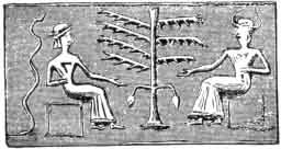 Our excavators have not as yet found a report of the fall of man and of the serpent that seduced Adam and Eve to taste the fruit of the tree of life. There is, however, a great probability that some similar legend existed, as we are in possession of pictures which represent two persons seated under a tree and a serpent near by.