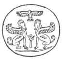worshipper standing before the idol of a god. Behind him is the tree of life and a priest carrying in his left hand a rosary, while the deity hovers above them in a similar shape to the Ahura-Mazda pictures of the Persians.