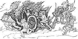 HONO KURUMA, THE CART OF HELL, (After an old Japanese painting.)