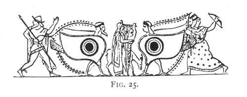 [paragraph continues] Museum, is but a sample of the eyes found on painted vases like this, not only of Etruscan, but also of undoubted Greek origin, which are fully recognised, says Dennis, as charms against the evil eye. 233