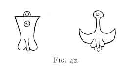p. 68, who gives it as a pelekys or axe, which he says is an amulet against fascination. Fig. 44 is from a sketch by the writer from the same museum.
