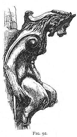 Of course as time went on these grotesque demons and goblins, having been adopted as regular items of church decoration, lent themselves to the treatment of artistic and cultivated taste; but there can be little question as to their original intention. No better example of what we are maintaining can be found than that of the famous Florentine diavolo, of which a rough sketch by the writer is annexed (Fig. 92).