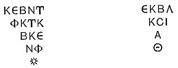 As for the symbols so largely used here and in other Gnostic monuments, their frequent construction out of lines terminated by dots or heads irresistibly suggests a theory for their origin. In this respect, and in general form, they strikingly resemble certain characters in the oldest Babylonian alphabet. This alphabet, simple in construction, long preceding the elaborate nailhead, is allowed to have been pictorial, i.e. hieroglyphic, in its nature. It is very conceivable that, revered for antiquity, this primitive character was preserved in sacred usages long after it had grown obsolete in common life. The cuneiform continued the national alphabet of Persia down to the Macedonian conquest, and doubtless was the one generally employed by the natives (very few of whom probably learnt the language of the new masters) until it was replaced by its last modification the early Pehlevi. And as for the primitive hieroglyphic letters, it was natural that certain of their forms, expressing peculiarly sacred ideas (as the