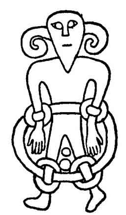 SATAN BOUND. ON PRE-NORMAN CROSS SHAFT AT KIRKBY STEPHEN, WESTMORLAND.