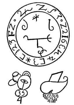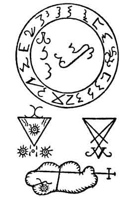 better and more friendly than the rest. 1 The character must be worn upon the person; in the case of a male, it should be placed in the right pocket, but a female must carry it between the breasts, towards the left side, like a reliquary. It should be graven or written on the day and in the hour of Mars for both sexes, and apparently in the case of each of the three spirits.