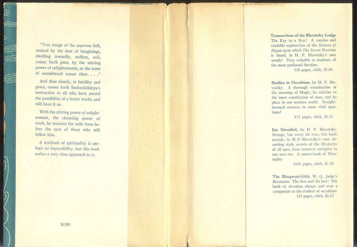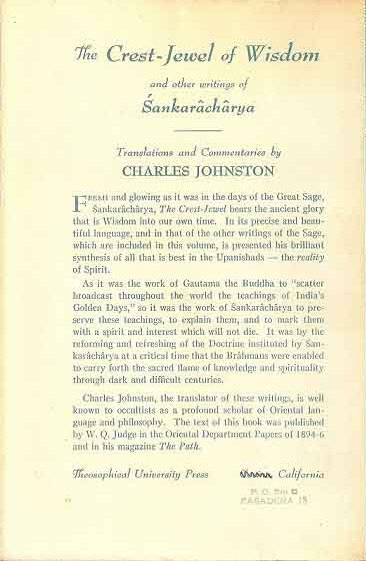 FRESH and glowing as it was in the days of the Great Sage, Śankarâchârya, The Crest-Jewel bears the ancient glory that is Wisdom into our own time. In its precise and beautiful language, and in that of the other writings of the Sage, which are included in this volume, is presented his brilliant synthesis of all that is best in the Upanishads--the reality of Spirit.