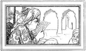 On reaching her home the Brahmani told her parents of her meeting with her husband, and what a valuable piece of paper he had given her; but not liking to go before the king herself, she sent one of her relations. The king read the paper, and ordering the man to be flogged, dismissed him. The next morning the Brahmani took the paper, and while she was going along the road to the darbar reading it, the king's son met her, and asked what she was reading, whereupon she replied that she held in her hands a paper containing certain bits of advice, for which she wanted a lac of rupees. The prince asked her to show it to him, and when he had read it gave her a parwana for the amount, and rode on. The poor Brahmani was very thankful. That day she laid in a great store of provisions, sufficient to last them all for a long time.