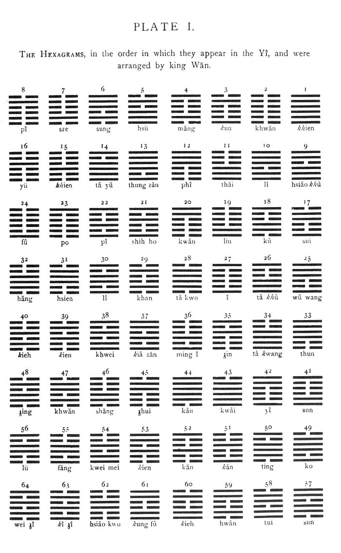 The HEXAGRAMS, in the order in which they appear in the Yî, and were arranged by Kin Wăn.