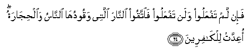 24. Fa-in lam tafAAaloo walan tafAAaloo faittaqoo alnnara allatee waqooduha alnnasu waalhijaratu oAAiddat lilkafireena