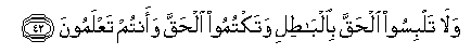 42. Wala talbisoo alhaqqa bialbatili wataktumoo alhaqqa waantum taAAlamoona