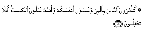 44. Ata/muroona alnnasa bialbirri watansawna anfusakum waantum tatloona alkitaba afala taAAqiloona