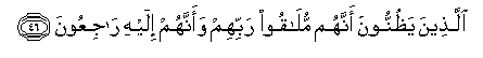 46. Allatheena yathunnoona annahum mulaqoo rabbihim waannahum ilayhi rajiAAoona