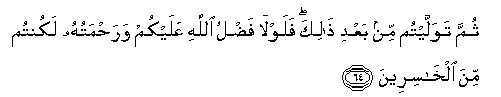 64. Thumma tawallaytum min baAAdi thalika falawla fadlu Allahi AAalaykum warahmatuhu lakuntum mina alkhasireena
