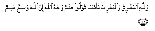 115. Walillahi almashriqu waalmaghribu faaynama tuwalloo fathamma wajhu Allahi inna Allaha wasiAAun AAaleemun