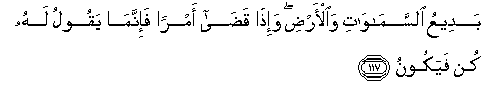 117. BadeeAAu alssamawati waal-ardi wa-itha qada amran fa-innama yaqoolu lahu kun fayakoonu