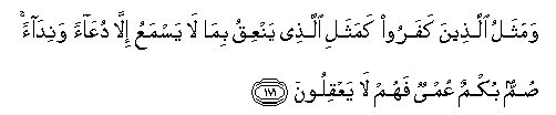 171. Wamathalu allatheena kafaroo kamathali allathee yanAAiqu bima la yasmaAAu illa duAAaan wanidaan summun bukmun AAumyun fahum la yaAAqiloona