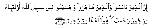 218. Inna allatheena amanoo waallatheena hajaroo wajahadoo fee sabeeli Allahi ola-ika yarjoona rahmata Allahi waAllahu ghafoorun raheemun