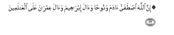 33. Inna Allaha istafa adama wanoohan waala ibraheema waala AAimrana AAala alAAalameena