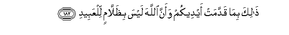 182. Thalika bima qaddamat aydeekum waanna Allaha laysa bithallamin lilAAabeedi