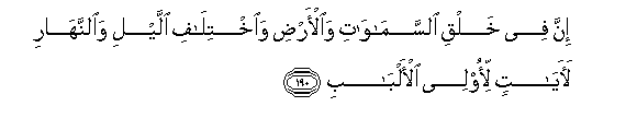 190. Inna fee khalqi alssamawati waal-ardi waikhtilafi allayli waalnnahari laayatin li-olee al-albabi