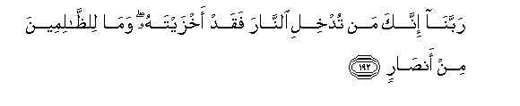 192. Rabbana innaka man tudkhili alnnara faqad akhzaytahu wama lilththalimeena min ansarin