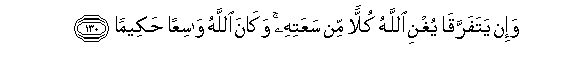 130. Wa-in yatafarraqa yughni Allahu kullan min saAAatihi wakana Allahu wasiAAan hakeeman