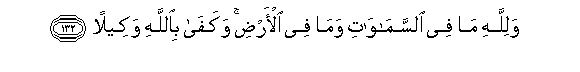 132. Walillahi ma fee alssamawati wama fee al-ardi wakafa biAllahi wakeelan