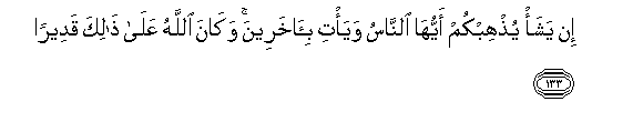 133. In yasha/ yuthhibkum ayyuha alnnasu waya/ti bi-akhareena wakana Allahu AAala thalika qadeeran